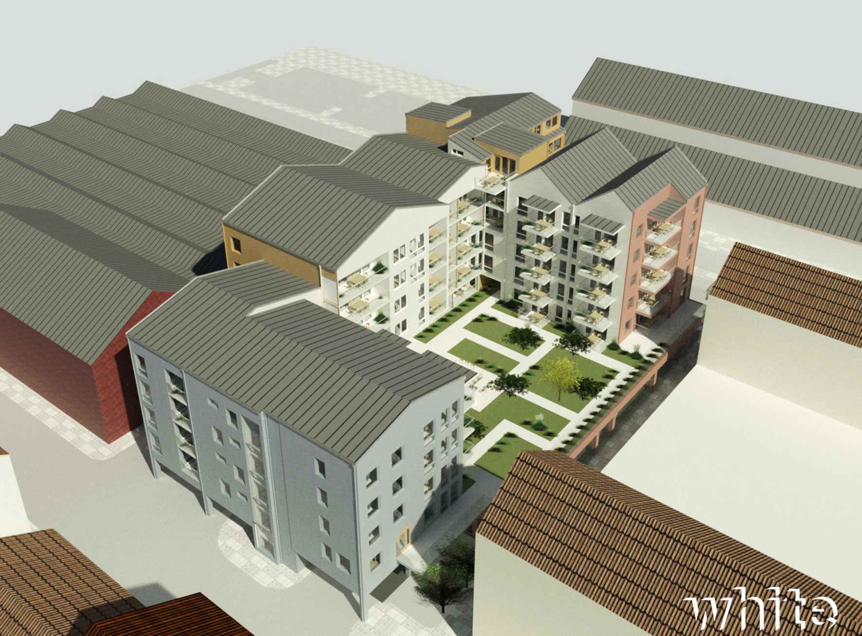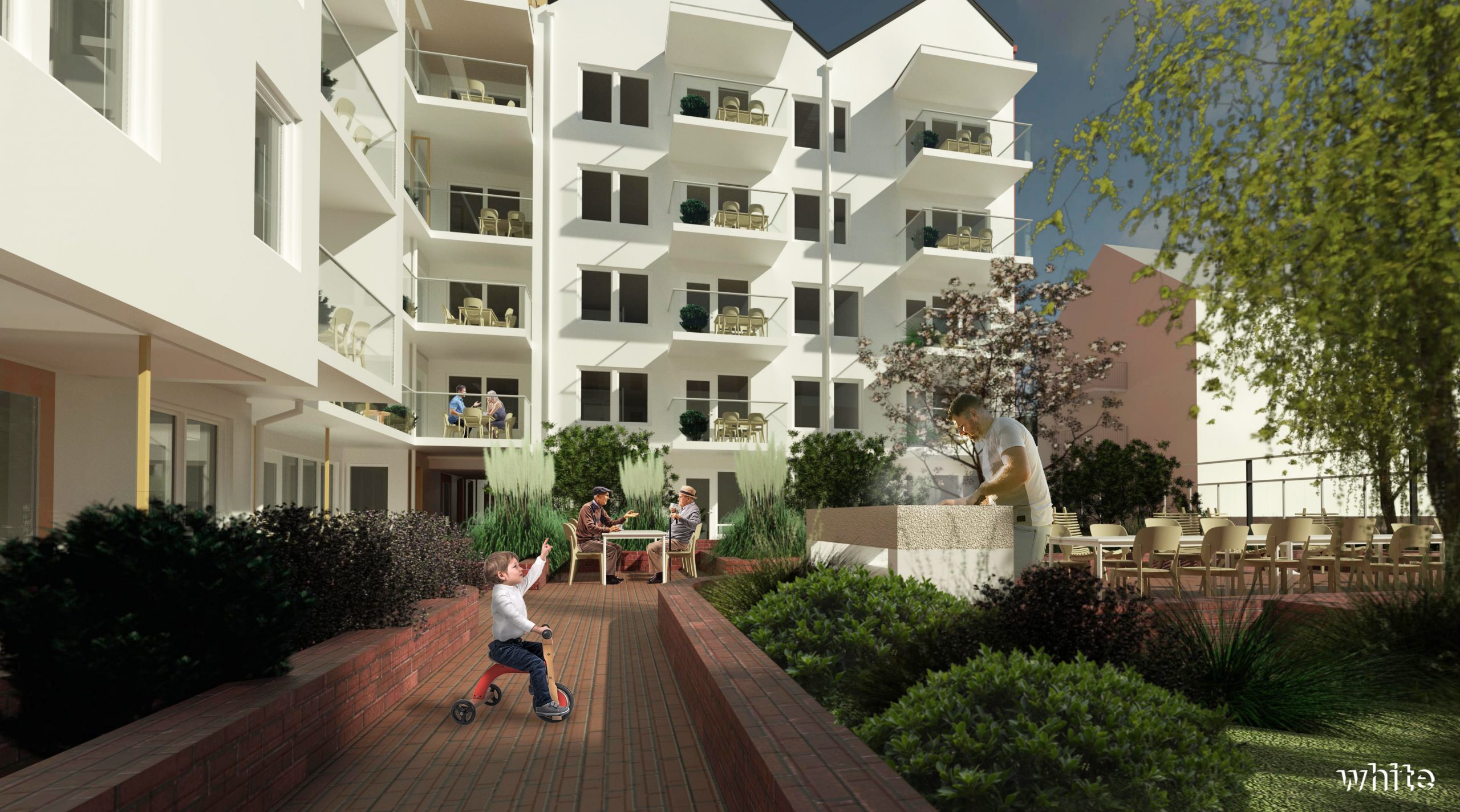 Även en vacker innergård har vi byggt och ett parkeringshus i 2 plan under huset.